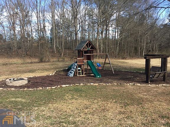 Perfect for family fun on the Wooden Playground set! Enjoy the firepit or relax in the swings in this well planned side yard with plenty of parking on the asphalt driveway. Fenced yard for the kids, dog pen too! Convenient to Rome, Cartersville, & Rockmart. Country porch with a red swing overlooking nicely landscaped yard. Hardwood flooring, granite counter tops, large kitchen with island, stainless appliances remain. Spacious deck for easy grilling out! Half bath on main for guests and Master bedroom on main with tile & granite double vanity, separate tile shower & garden tub. Partially finished basement heated and cooled. Upstairs features 2 large bedrooms & full bath, storage & pull down attic access. Definitely worth a look!
