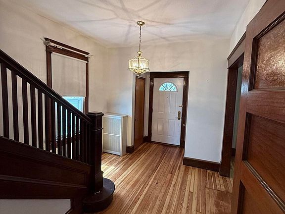 This fully renovated large Single-Family Home offers a perfect mix of character and modern updates in the Wyoming Area School District. It features 3 spacious bedrooms, 1 updated bathroom, and a bonus commode in the basement. Beautifully restored hardwood floors throughout, large living room, formal dining room, and a cozy family room with a fireplace. The kitchen has been completely updated with stainless steel appliances and contemporary finishes. Outside, enjoy a large front porch, fenced-in yard, and off-street parking. A large attic for storage as well as a spacious basement with a workshop room. Pets are considered. First month's rent and security deposit required. Move-in ready, schedule your showing today!