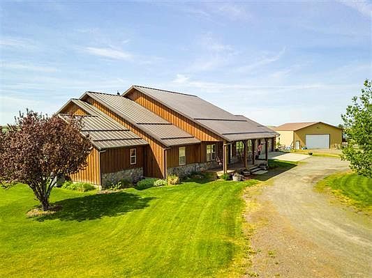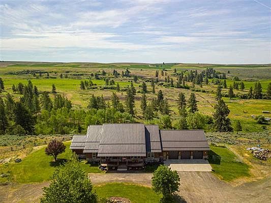 Peaceful country living, front porch swings, panoramic views & abundant wildlife just 35 min outside Spokane. Work safely from home w/high speed wireless internet in the quiet countryside. Formerly a working cattle ranch perfect for any livestock Irrigated hay fields can be converted to gardens, 2 private wells. Rock Creek meanders through this 263 acre property. 4 bed/4bath rancher home, plus office &bonus room. 40x60 finished shop, 16x24 tack room. Make this your own private retreat. Income opportunity as well: You can choose tolease portions of land to neighbors for cattle/hay, etc. Over 30 acres of hayfield to lease!