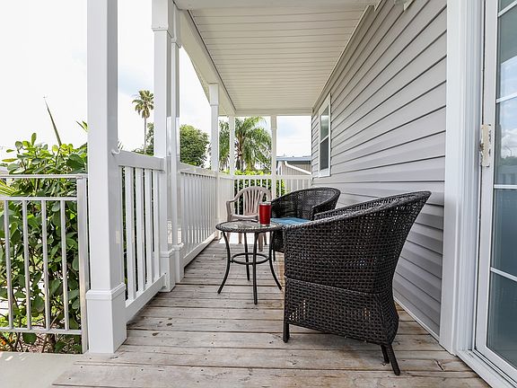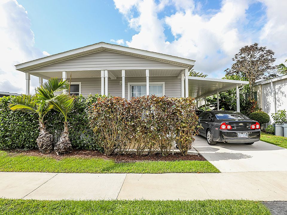 OVER THE HEDGE HIDEAWAY is hard to miss when viewed from the curb, with a tall hedge forming a green curtain in front of the house. The charming porch, as well as the large carport with space for two-car parking, add to this home’s desirability. OVER THE HEDGE HIDEAWAY has some recent upgrades including new air conditioning in 2015 and brand-new carpeting in all bedrooms. The open-plan design combines the living room, dining room and kitchen in an L-shaped layout. The living area has soft carpeted flooring, whereas the dining room and kitchen have maintenance-free vinyl tiles. The large living area is brightly lit with ample natural light invited through mini-blind treated windows, while a chandelier fan helps to regulate the air flow in the room. The dining room has a mini-blind treated window that brightens up the area with natural light, besides presenting views of the lush greenery outside. The kitchen is visually separated from the dining room by an open counter top with an overhang, which doubles up as a bar counter with stools. Beautiful wood-toned cabinetry provides ample storage space in the kitchen. Essential modern appliances in black sharply contrast the cabinets to bring a stunning look to the kitchen. These include a smooth top range, refrigerator, dishwasher and microwave. A small recess off the kitchen comes equipped with a clothes washer and dryer. The window above the stainless-steel kitchen sink looks out over the gorgeous landscaping outdoors, providing the chef with beautiful views. Carpeted floors bring a cozy ambiance to the master bedroom in ‘Over the Hedge’, while mini-blind treated windows invite natural light to infuse the room with brightness. The en suite bath is luxuriously large and comes with separate ‘his & hers’ countertop basins with storage underneath, a Roman tub and a shower enclosure with sliding glass doors. Finally, like all homes in this lovely lakeside community, you will enjoy central air and heat, off-street covered parking, your own outdoor storage shed, professional landscaping and sprinkler system, and access to the community's extensive recreational amenities including enormous heated pool complex, new fitness center overlooking the pool and lake, tennis, basketball, clubhouse, sauna, relaxation room, lake recreation and more. To schedule a tour of this lovely home, contact Linda at (954) 417-8749. Ask for OVER THE HEDGE HIDEAWAY, #7B-PL.