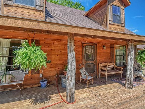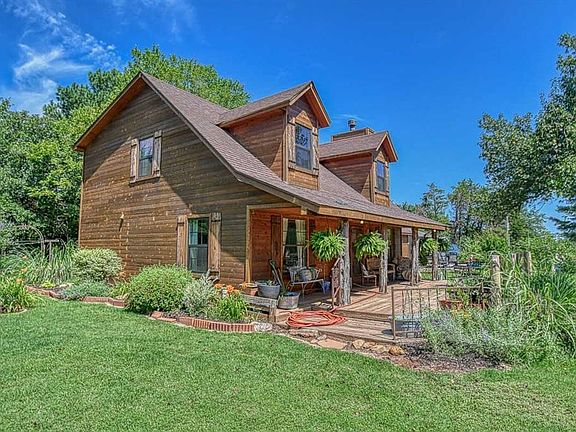 Amazing country property near Lake Thunderbird. Home is 3 bedrooms, 2 baths, 2 living areas, beautiful Cedar siding. Siding and most windows were replaced in 2020. Sit out on the wood deck and watch the wildlife in your front yard. Large metal workshop built in 2012 has electric w/barrel metal stove. Also carport is available for RV or Boat cover. Well pump was replaced June, 2023, dishwasher in 2022. Clawfoot bathtub in upstairs suite. Storage galore through out. Fruit trees, Peach, Pear, Cherry and 2 Apple. Small water feature of back covered patio. Seller to leave Pot Rack in Kitchen, kitchen refrigerator. Black & Silver NEW free standing Elec stove to be installed within a week.
