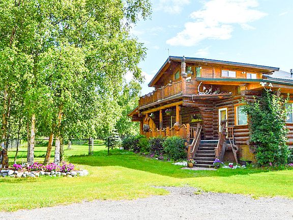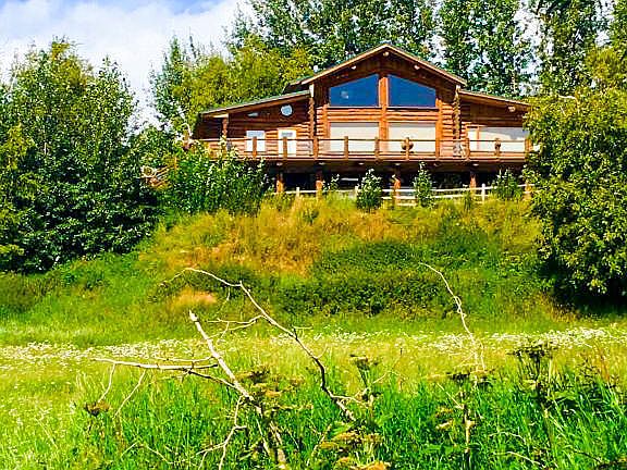 View from Lazy to Twin Peaks with Knik glacier in the middle from this Lovely Log Home. Built high on a ridge on 5 Acres w/privacy yet minutes to Palmer. Open concept, high Ceilings & picture windows show the view in every room. Wood accents & laminate remind you that you are Living Alaska!, New Granite Counters added the finishing touch to kitchen. Master Suite w/ AWESOME built in Closet! This Log Home is AMAZING with the Alaska Mountain Views~You won't want to miss the opportunity to Own this One of a Kind Home close to town and shopping and Perfect for commuters. Very Private with a long driveway this home sits on a ridge overlooking the Chugach Mountain Range in the Front and the Talkeetna Mountain Range in the Rear. 360' Views from here! Remodeled recently with $6000 of Hickory Floors in the West Room, Engineered Flooring in the Main Level Bedroom, $15,000 Fenced Yard, 2 Gas Stoves $12,000 (1 in Kitchen and 1 in Living Room) A Custom Master Suite Closet in Lower Level $30,000, Granite Counters in the Kitchen $5,000, $13,000 Window Treatments, $22,000 Boiler, $14,000 Deck and the list goes on. Beautifully done and Ready for a New Family!! Call us today!!