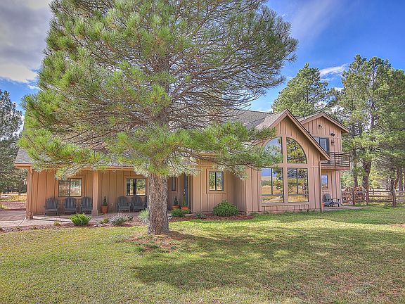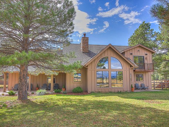This Gorgeous Retreat has a Fabulous Open concept floor plan along with million dollar views of the San Francisco Peaks. The home boasts Beautiful vaulted tongue & groove ceilings, a rock feature wall with a Heatilator Wood Stove, Unique Industrial custom metal trim & railings, concrete floors, custom light fixtures and a $30,000 sound system. The magnificent chef's kitchen has a very large eat-in Island, Silestone Counter tops, Oak Cabinets, Subzero refrigerator and Samsung appliances. The master suite has phenomenal views, vaulted ceilings, wood flooring, a large en suite with a soaker tub, dual sinks, custom lighting, amazing walk-in closet and a private deck. The Gorgeous 10.89 acres of treed land offer absolute serenity. The barn is 1850 sq ft and offers a 600 sq ft bonus area above.