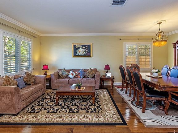REDUCED!!!!Beautiful and spacious home in Eastvale.Pride of ownership and many upgrades,gorgeous both inside and out.Formal living and dining rooms.Family room with gas fireplace with added colorful glass.Large kitchen with granite counter tops, stainless steel appliances, high-end cabinets, breakfast area, lights under cabinets and a large laundry room with tile. Hardwood flooring on ground level, a large loft and spacious bedrooms on upper level. Entire home has upgraded recessed lights, chandeliers, ceiling fans, high-end switches, blinds, shutters and crown molding...attention to detail! Windows are energy efficient with double glass. Landscaped front and backyard with grass, flowers and fruit trees. A nice sitting area with upgraded alumawood patio cover and security screen on sliding door. The two-car garage has direct access into kitchen and has epoxy flooring. New updated AC unit.This home is located in a very desirable area of Eastvale.It is walking distance to Harada Elementary School which is located directly across the street. Your kids can walk to the school without the need of being dropped off! Elementary,middle and high schools are ranked very (8-10). Ontario airport is within a 15 minute drive and easy access to major freeways such a I-15, 91 and 60...very close to all the best shopping and restaurants.No HOA and really low assessments.Move in Ready,upgraded turn key home.Move in and unpack!!No need to spend extra $$$ and time to hire contractors to upgrade.