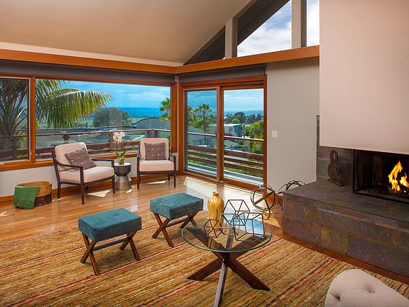 Views of the Pacific Ocean and Torrey Pines Reserve brighten this Via Latina home from top to bottom. Nestled in the hills of southern Del Mar, this house encompasses the finest elements of coastal living. When paired with the lush, well-designed landscape, the decks that surround the home enhance the indoor-outdoor space. This private retreat is perfect for weekends fireside, an evening stroll to the local restaurants, or relaxing walks to the beach from sunrise to sunset.