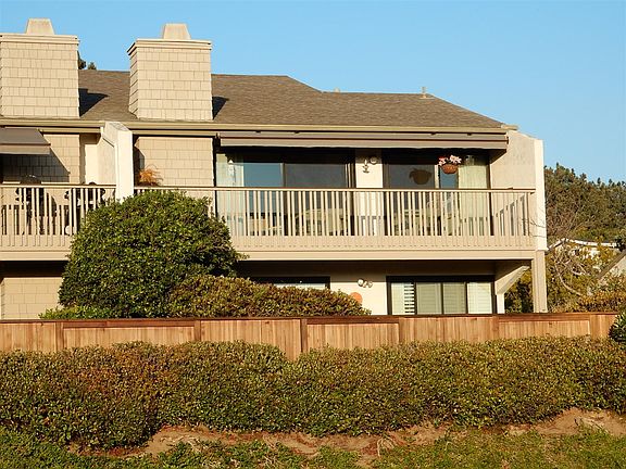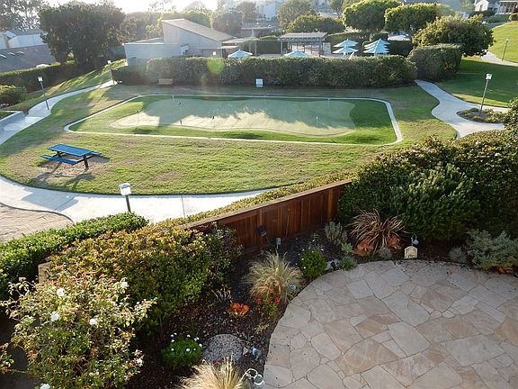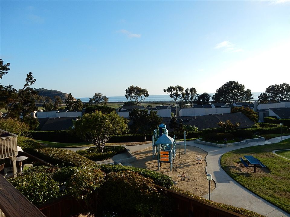 Panoramic ocean views west of I-5 in very desirable Sea Village, completely remodeled. This split level townhome has one of the best locations within the community. Don't miss the huge balcony overlooking the putting green and pool/spa area plus the private, beautiful flagstone patio and garden that is accessed by both downstairs bedrooms. The upstairs loft is open to the living room and includes a half bath. Walking distance to Torrey Pines State Beach and restaurants.