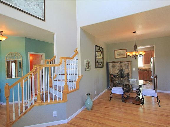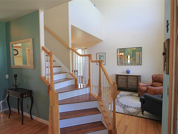 Updates and remodeling abound in this 2 story home. New door. Open, light, bright and airy, corner lot with tall vaulted ceilings that soar to the 2nd floor. Hardwood up and down with tile in bathrooms up for ease of maintenance. Granite counters, granite sink. Totally remodeled master 5 piece bath with trendy copper sinks and new glass shower surround being installed soon. Formal living room with built in shelving and dining room. Plantation shutters, walk out to deck from kitchen eating area and enjoy the views to the open space beyond. The yard boast mature landscaping and perennials that can be enjoyed in the meticulously maintained yard. Best house we've seen at this price point!