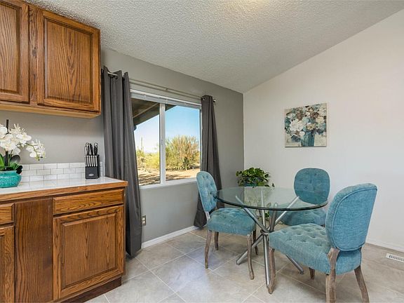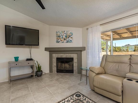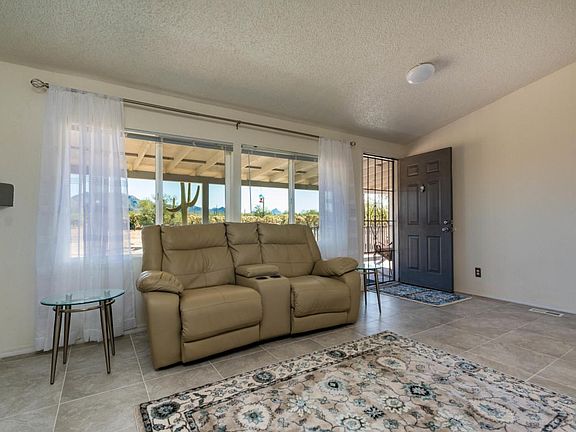 Pure desert living at its best! Peace, Quiet, Beauty and Privacy on 5 acres. Totally remodeled 3BR/2B mnfg. home. Better than new. New roof, new sub-floor to support beautiful ceramic tile throughout. Lots of light from new large double pane windows and sky-lights. Open kitchen with almost new appliances. Wood-burning fireplace in the great room for those cool desert nights. Sunset and Mountain views - you'll never want to leave the covered front or back porch. Cleared natural desert landscaping with lots of saguaros. Huge circle driveway, storage shed and workshop. Water is provided by your own private well. Propane tank and well pump all enclosed. Fenced in area with doggy door for pets. Truly one of a kind in quality workmanship plus Mother Nature's awesome beauty. You can feel your