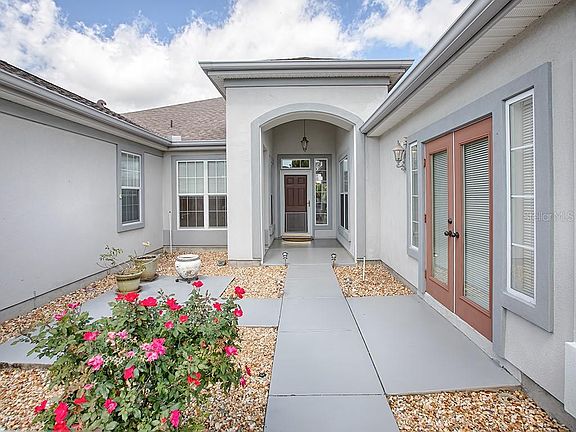 This expanded 3 bedroom, 3 full bath and a den/office Santa Rosa, is certainly one of a kind. As you enter the gated courtyard you will see the Casita on your right that has tile flooring and it's own A/C system, closet and bathroom, that is perfect for many uses including a craft room, a private office, a guest room.It features a huge florida room, 14 x 26, a covered birdcage overlooking a beautifully landscaped lot for lots of privacy. The Master bedroom is huge with bay windows and a sitting area. The master bath has a jacuzzi tub with a separate shower. The laundry room has been fitted for gas so if you desire gas for your washer and dryer, it is set up for it. No one ever says that a garage is too large, but if they did this would be the one. Both the garage doors and over the garage are insulated,there is an a/c vent that can connect in minutes and also a golf cart garage. This is one you need to see. All the furniture and furnishings that are in the house will stay if desired.A/C new 2017. Roof new 2014. See it Today!