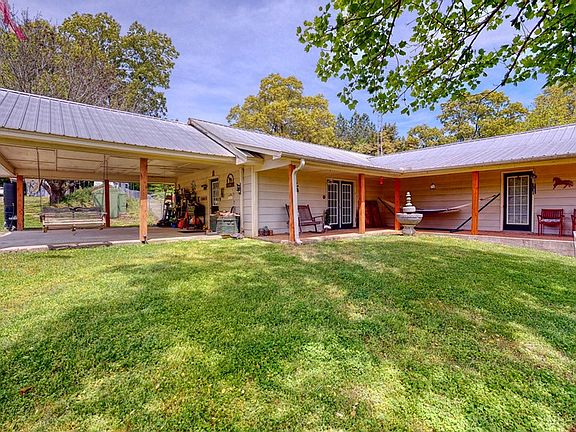 Your new farm has just arrived on the market! This home features 2 roomy bedrooms, 2 baths, & office. The kitchen has updated cabinets and countertops, laminate floors in the living areas, tile bathrooms and carpet in the bedrooms. Approximately 32.7 acres with 3 pastures,7 stall horse barn, year-round wet creek, 5 run-in shelters for your livestock and a stocked pond with a dock. It has a storm shelter, a shooting house and deer stands that stay on this prime hunting ground. There is a fenced area directly behind the house for your small pets to keep them from wandering too far. RV hook-up on property plus a place ready for a mobile too (City water avail at front lot). High speed internet