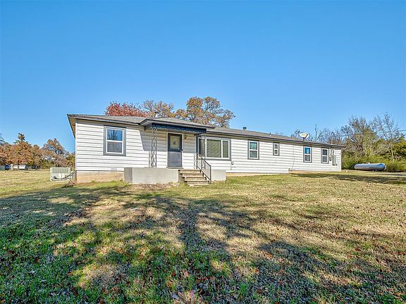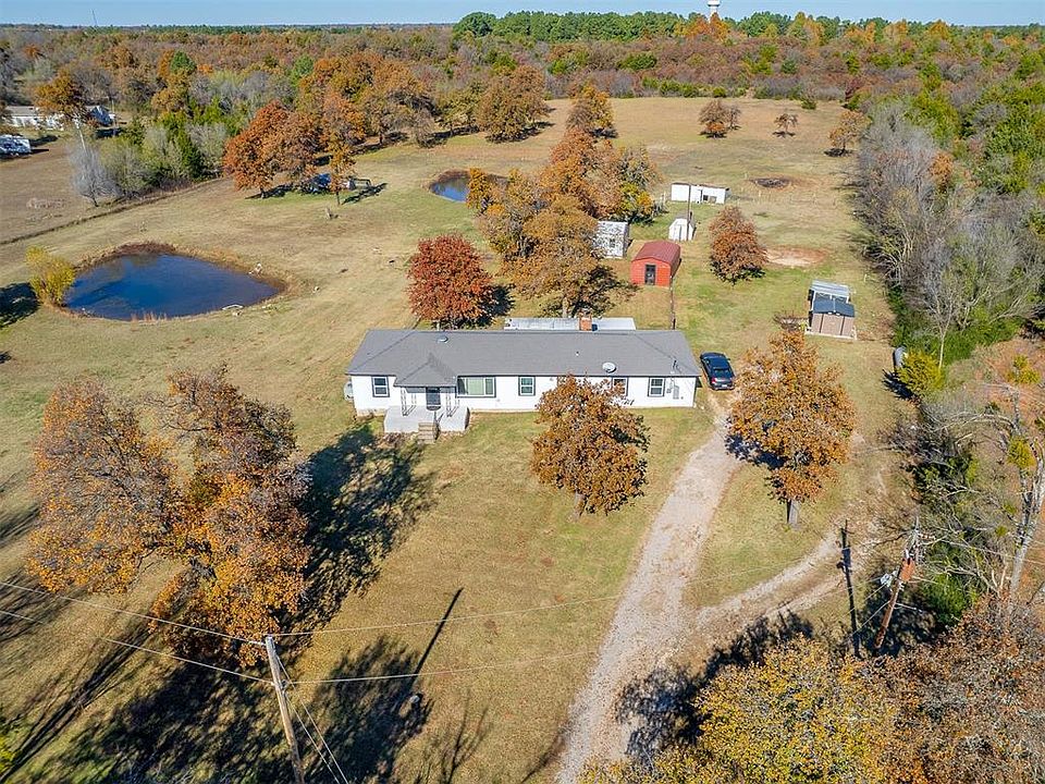 Spacious 4.88-acre property in the sought-after Choctaw School District! This ranch-style 3-bedroom, 2-bathroom home offers a unique layout with three separate living areas, providing plenty of room for relaxation and entertaining. The cozy brick fireplace adds warmth and charm, and ceiling fans in every room (except bathrooms) enhance comfort throughout the home. Enjoy the newly added front porch as you take in the peaceful surroundings, or unwind on the back patio. The home has been freshly updated with new paint and carpet throughout most of the home, giving it a modern and welcoming feel. Additional features include a water filtration system for clean, fresh water and a safe room on the patio. The kitchen boasts newer appliances, including a dishwasher and stove, while the electrical panel has been upgraded and includes a hookup for a generator, providing peace of mind. The property also features several outbuildings, ideal for storage or hobbies, and two scenic ponds that add to the tranquil appeal. This is a rare opportunity to create your dream lifestyle in a peaceful, spacious setting—don’t miss it!