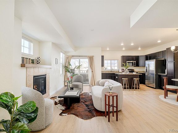 A sun-drenched escape awaits in this Riverdale Park townhome. Ideally situated in an end placement for privacy, this residence beams with stylish finishes and abundant natural light. New luxury vinyl flooring flows throughout the main level complemented by neutral wall color. A tiled fireplace glows with warmth and ambiance in a bright living area. Sliding glass doors open to a private patio, perfect for outdoor entertaining. A large kitchen boasts granite countertops, a gas range and ample cabinet space. The upper level hosts two sizable bedrooms plus a flexible room that can be used as an office or third bedroom. Downstairs, an unfinished basement offers endless potential for personalization. Upgrades include a tankless water heater. Built in a newer section of the community, this home stands apart from many interior units with shared outdoor spaces. A central location offers proximity to Summer Moon Coffee Shop, Denver Premium Outlets and The Orchard with shopping and restaurants.