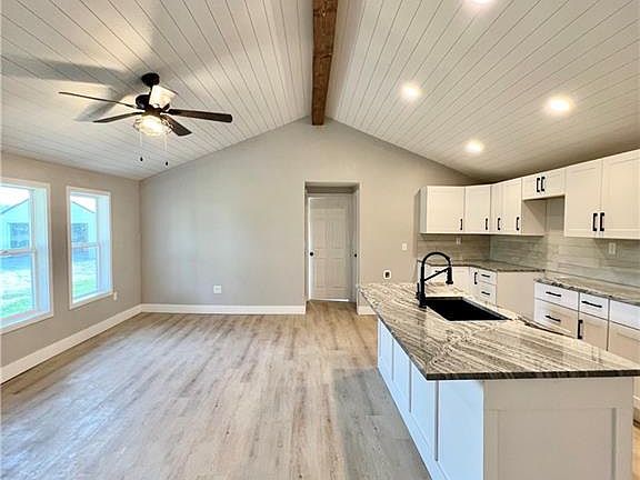 This house has it all!! Completely new all the way around! So much character and use of space in this home! 3 bedrooms, 2 full bathrooms, 1 half bath, spacious laundry room with sink, stunning granite counter tops throughout, vaulted ceilings with wood beam, a pantry you will fall in love with, detached 2 car garage, 2 acres, unique custom designed front porch and new deck on back. Huge front yard with plenty of room for a garden! Such a peaceful setting! Selling As Is.