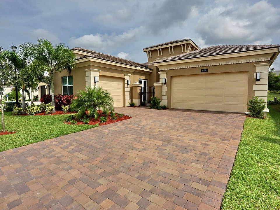 Just reduced! Why build when you can move right in to this Brand New Caroline Model never built before Valencia Bay. Come enjoy the active adult lifestyle you deserve. This Caroline model features a 3 car garage, 2 full bedrooms & a huge clubroom which can be used as a 3rd bedroom/office/guest room & beautiful $27K custom water feature & is partially furnished. This home features additional $46k in builders options & the builder is offering a $10,000.00 promotion for quick move in (included in price). This brand new home offers the newest Hurricane codes & is complete with impact glass throughout & comes with a Full ONE YEAR Warranty. ''PARTIALLY FURNISHED - FREE FURNITURE.''Additional closing incentives may apply. Incentives can change at any time.
