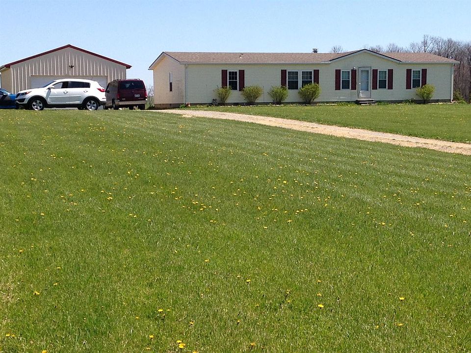 Open floor plan, 3 BR, 2 Bath with fireplace and whirlpool tub in master bath. 24 X 24 detached garage on 5.01 acres. One year home warranty.