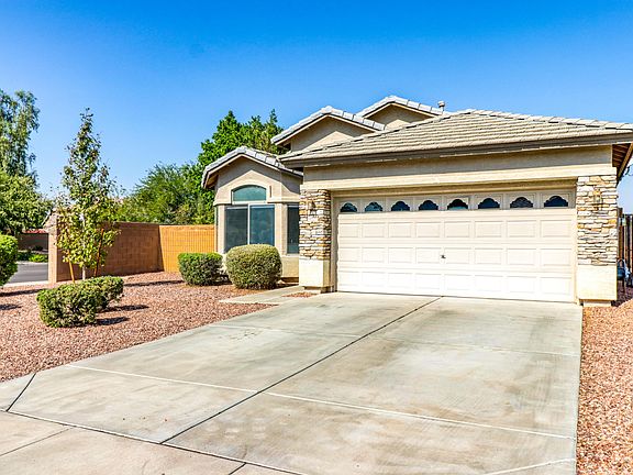 Located in the highly sought after Wigwam Creek Community in Litchfield Park, this 3 bedroom 2 bath home, sits on a premium oversized corner lot on a quiet street. The charming kitchen has a bright open concept with an island that overlooks the cozy family room with a fireplace. The spacious Master bedroom has a walk-in closet. Master bathroom has a full private bath that boasts a separate shower/soaking tub & dual raised vanities! Secondary bedrooms are nicely sized! Features include Vaulted ceiling, ceiling fans, sunscreen windows/north south exposure, 2 car garage with extended driveway! The backyard has a large covered patio and lots of potential for customizing it any way you can imagine! Close to golf courses, restaurants, schools, easy access to I-10, 101 & 303 freeways.
