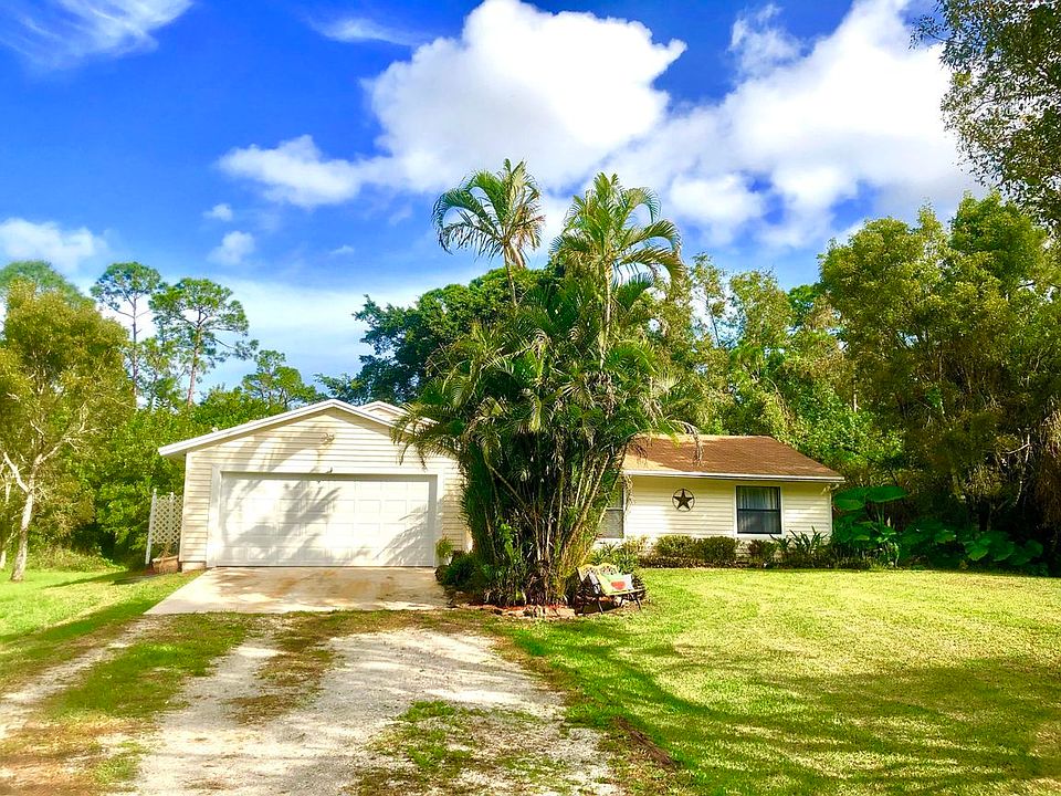 PRICED RIGHT !! WHY RENT ??? WHEN YOU CAN OWN THIS WELL MAINTAINED 3 BEDROOM 2 BATH HOME ON 1.15 ACRES !! PAVED RD & FULLY FENCED. THIS SPLIT FLOOR PLAN HAS AN OVERSIZED OPEN KITCHEN WITH END LESS POSSIBILITIES !! MASTER SUITE WITH SITTING AREA, TUB AND SHOWER COMBO. SCREENED BACK PATIO FOR ENTERTAINING/ BAR B QUE !! OTHER 2 BEDROOMS ARE NICE SIZE. THIS HOME ALSO BOAST FORMAL DINING, AND HUGE FAMILY ROOM. NO HOA- BRING YOUR RV, BOAT, TRAILER AND HORSES. MINUTES TO ROYAL PALM SHOPPING, SCHOOLS, BANKS, LIBRARY, PUBLIX, AND ENTERTAINMENT !! TRULY A PRICED RIGHT HOME !! OWNER MOTIVATED !! OWNER RELOCATING!! NO HOA !! 1.15 ACRES !!
