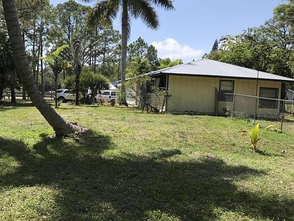 Great opportunity to have your dream home! This property sits on 1.14 acres of land with pineapple, coconut and palm trees and a private pond stocked with bass and serves as the source for the irrigation system. No monthly HOAs, no restrictions on pets, vehicles or rentals. Even ride your quads or dirtbikes, park a boat or camper! This original home has great bones with solid construction above and beyond min code requirements. Complete with a work shop and garage, 220 electric. 10X10 sun deck and basketball court, Patio and Paved drive way. Galvanized Hip roof was installed in 2004. Complete set of hurricane shutters convey, lots of room for additions, upgrades and customization to make this property truly yours, 203k funding welcomed.