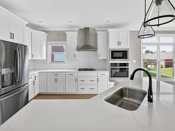 Fall in love with the convenience of The Enclave at Douglass Hills, where thoughtful design meets low-maintenance living. This beautifully upgraded home offers a bright, open layout perfect for everyday comfort and entertaining. The chef's kitchen features a large island with seating, stainless appliances, and a pantry with wood shelving. A built-in beverage area opens to the dining area and living room with a cozy gas fireplace flanked by built-in bookcases and a vaulted, beamed tray ceiling. Just off the living space, enjoy a screened, covered porch that leads to an added spacious patio and fenced backyard—ideal for relaxing or hosting guests. Enjoy the convenience of custom window treatments present throughout. The main level features a first-floor Primary Suite with a trey ceiling and Ta spa-like ensuite bath featuring a large tiled shower with an added rainfall shower head, soaking tub, and abundant cabinetry. A second main-level bedroom and full bath offer flexibility for guests or a home office. You'll also appreciate the dedicated mudroom with added custom built-ins just off the two-car garage, conveniently connected to the laundry room. Upstairs, two generously sized bedrooms share a full bath, offering plenty of space for family or visitors. The finished basement is a true extension of the home, featuring a wet bar, built-in entertainment center, home gym, full bath, 5th bedroom, and ample storage space. With the HOA covering lawn care, landscaping, and snow removal, this home offers the ease of low-maintenance living in a highly desirable location. Don't miss this rare opportunity in The Enclave at Douglass Hills!