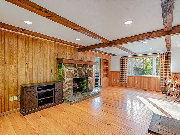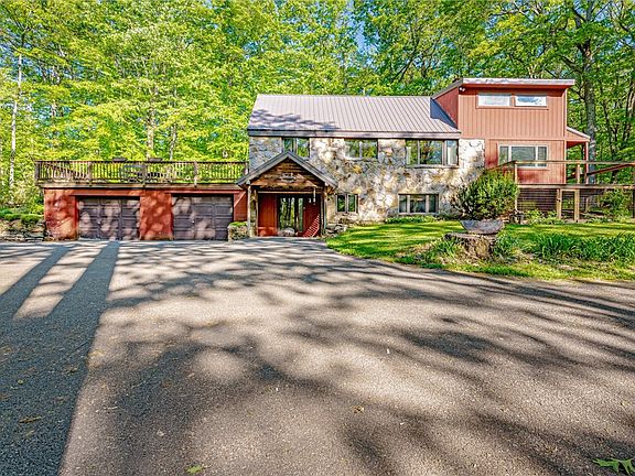 Just minutes off of Hidden Valley Resort, sits this cottage/chalet style home on 2 park-like acres. Nestled back in the woods with a fenced in area, paved driveway and firepit area are some of the highlights. There is a large deck area with a retractable awning. The main floor includes an updated kitchen with hickory cabinets, updated full bathroom, living room with stone fireplace and a den area. There are 2 additional bedrooms upstairs with a full bathroom, while the lower level has a family/game room with access to the 2 car garage. There is a 3rd full bathroom that needs to be finished out. The home offers some unique details and just needs a little TLC. There is ample parking and a newer metal roof. The location is perfect and you don't have to pay any HOA fees. Enjoy the privacy of your very own mountain getaway with easy access to the state parks and ski resorts.