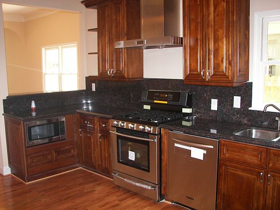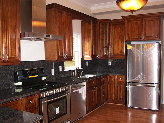 • Kitchen Features: Breakfast Bar, Cabinets Stain, View to Family Room, Solid Surface Counters