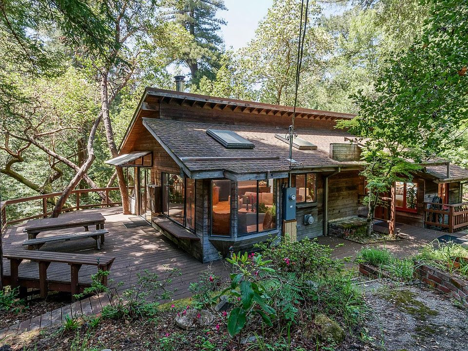 NEW PRICE! A magical 2.6 acres which has served as the Edwards Family Summer Camp for 4 generations. An idyllic setting! Gurgling creek with swimming hole, walking paths zig zagging between cabins, a lush forest canopy above. Contributions to this special property over the years include 2 cabins, a studio, a large workshop, a small shed, and RV site with hookups . The first cabin C dubbed The Bean was built on the creek in the 1920's and features hand split redwood shingles and old growth fir interior paneling. Generations of adding and remodeling to The Bean created 3 small bedrooms, 1 bathroom and a deck with commanding views of Bean Creek. The second cabin B known as The Sprout was built in the 1950s and has evolved into a light-filled, open and airy 2BR/1BA home with hobby room, extra storage underneath and views through the treetops to the creek below. Finally, added in the 1980s unit B or The Nest is the cozy studio with loft. A close-in country compound waiting for new stewards.