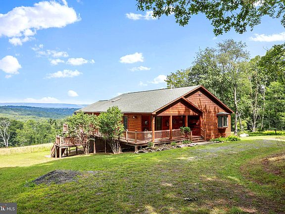Welcome to Your Mountain Retreat in beautiful Hardy County, West Virginia! Nestled amidst the serene beauty of the West Virginia mountains, this captivating cedar-sided Contemporary style home offers a lifestyle that seamlessly combines modern comfort with nature's tranquility. Situated on a sprawling 20-acre property, this 3-bedroom, 3-full-bathroom haven is the epitome of luxury mountain living. As you approach the property, the elegant cedar siding and distinctive contemporary architecture immediately catch your eye. Step inside, and you'll be greeted by an open, inviting floor plan that perfectly blends natural elements with a sleek design. The heart of the home is a spacious living area featuring a custom wood-burning fireplace adorned with large windows that frame breathtaking panoramic western views. Imagine sipping your morning coffee on the screened deck while the sun paints the sky in vibrant hues or unwinding in the evening with the most spectacular sunsets as your backdrop. The spacious kitchen boasts an ample appliance package, plentiful counter space, and custom cabinetry. Whether you're a seasoned chef or an occasional cook, this kitchen will inspire your culinary creativity. The adjoining dining area offers a perfect setting for intimate family dinners or gatherings with friends—retreat to the generously sized primary bedroom, complete with an en-suite bathroom featuring luxurious fixtures and finishes. Two additional bedrooms provide comfortable spaces for family, guests, or even a home office. A real gem of this property is the expansive 20 acres that surround the home. A harmonious blend of wooded and cleared areas invites exploration, providing opportunities for hiking, picnicking, and outdoor adventures right in your own backyard. Embrace the joys of outdoor living, whether stargazing from the open deck, relaxing by the fire pit, or watching the ample local wildlife in the sunlit clearing. For those who crave additional space, the partially finished basement offers endless possibilities – create a home gym, a workshop, or a recreation area that suits your unique interests. Discover your piece of paradise in Eastern West Virginia – where modern luxury meets the majesty of nature!