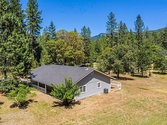 Beautifully updated 4 bedroom home on 4 usable acres nestled amongst majestic pines and just a short drive to Rogue River. The 1993 built single level home offers an open layout, brand new kitchen with custom cabinets and large island, new roof, new heating and air, new flooring, new interior and exterior paint and much more. The property is fenced with some cross-fencing and consists of a nice mix of mature trees and native grasses, very suitable for animals or leave it in its natural state for low maintenance living. Enjoy it all from the newly constructed deck that stretches the entire back of the home. Top it all off with a 9+ gpm well, pure clean water, a few outbuildings that need some TLC but could be very serviceable, and it's all situated in a quiet, private location. This is a great home and property!
