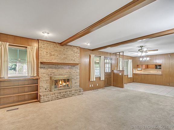 Great Tulsa property with 5 bedrooms and 2/1 baths, just under 1/2 an acre lot. Move-in-ready home with a fridge style deep freeze in the laundry room, two living areas with wood burning fireplace in the main living. Huge sunroom/mud room with windows all along the back of the house. Great size backyard with lots of room. No HOA. This home comes with the original 1967 blue prints and has only had one owner. Close access to the highways nearby and shopping. Next to ponds for fishing and private park areas.