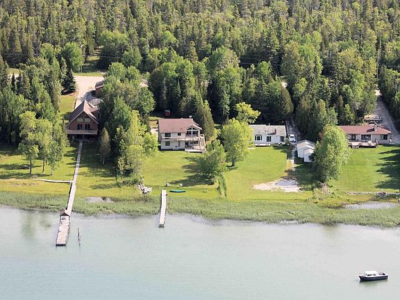 PRICE REDUCED! The ULTIMATE year-round home or summer retreat! Beautiful wood sided waterfront home on coveted Lakeside Drive, in Cedarville, Michigan. This home offers breathtaking sunset views of Muscoe Channel in the Cedarville Bay. The property offers 95 ft. of prime waterfront and a 75 foot deep water dock that will accommodate larger sized boats. The Cedarville Bay offers warm protected waters for swimming, fishing and many other water related activities. Winter months offer snowmobiling, ice fishing, and winter community events too. This is a nature lover's dream home location. This beautiful waterfront home sets on 1.2 acres of land and offers 2,500 sq. foot of living space with 3 bedrooms and 2 full baths. The interior is tastefully designed with a combination of knotty pine and painted drywall and is decorated to provide the UP North look of warmth and rustic charm. This property is extremely well maintained and has a full 2.5 car attached 26 x 24 garage what will accommodate a large pontoon boat. Just a short drive or boat ride from Cedarville Village, this property offers the convenience of being close to town combined with privacy and quiet neighbors. The property has something to offer everyone who loves the Northern adventure! Priced to SELL QUICKLY, this won't last long. Call now!