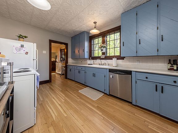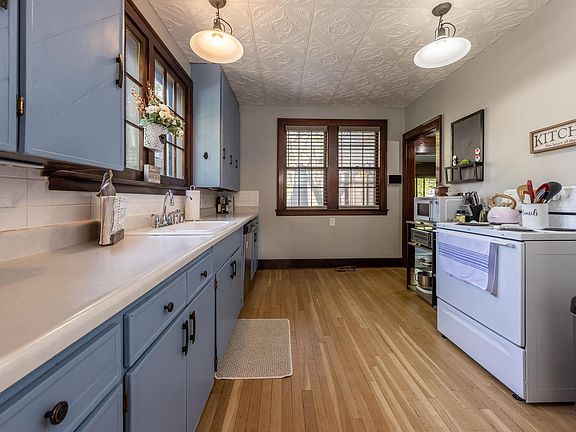All the old charm and character, with updates and well maintained, this home on a perfect fenced lot is what you’ve been waiting for. Three bedrooms are upstairs with a full bath and tons of closets and storage. Oversized main floor lets everyone stretch out, from the entry dining room and kitchen flowing around through the screened large additional sun porch into the huge living room with fireplace. Check out the curved ceilings in the dining and living room! So cool! Huge basement with tons of storage, or you can also use the large two car detached garage. From the hardwood floors to the trim work, doors, and glass knobs, this well kept gem is waiting to charm the socks off of you!