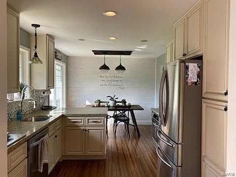 You don't want to miss your dream home located centrally in Fenton! Beautiful curb appeal with the white brick, vinyl siding and NEW Roof! Updated kitchen, updated and tiled bathrooms, Hardwood floors throughout house, Cozy finished basement with 100" screen/projector TV that stays and a stone bar. Laundry room that features a closet setup for more storage. Furnace and Air Conditioner replaced spring of 2021. Be sure to check it out as soon as possible as this won't last long!