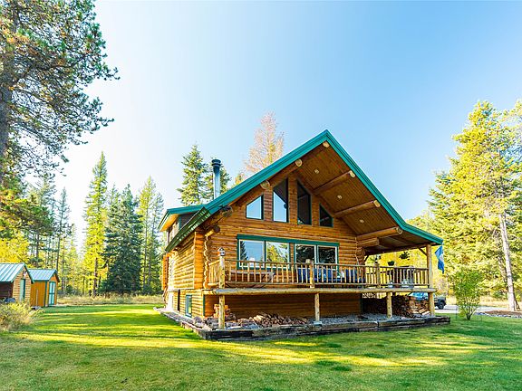 This handcrafted log home on just over 2 acres offers the perfect blend of privacy and beauty for anyone looking to make Bigfork, Montana their home. With 4 bedrooms, 2 bathrooms, 2 living areas, a wood stove, vaulted ceilings, beautiful wood trim, hard wood floors, and brand new carpet this home is move-in ready. Hardwood floors were refinished, carpet updated, and main level bathroom upgraded within the last month. The exterior boasts a 2 car detached garage, 2 sheds, a gazebo, an RV shelter and a beautiful yard space. With private HOA access to two Homeowners Parks on Swan Lake/ Swan River, this property has recreational fun for the whole family. Located just 10 minutes from downtown Bigfork and one hour from Glacier National Park.