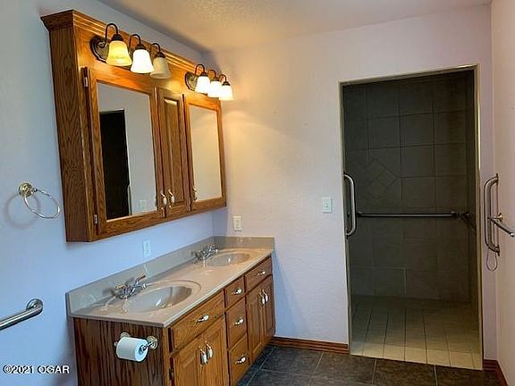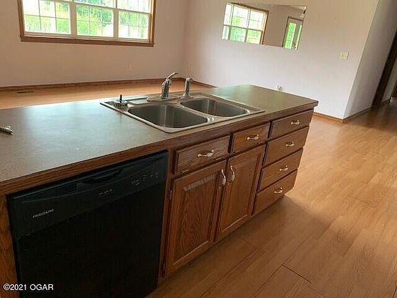 Established neighborhood just West of Neosho with easy access to Schools, Shopping and I-49Home sits off road has newer roof, open floor plan with eat at island bar separating the kitchen, living room, and dining room. Plenty of kitchen cabinets and pantry. Large utility room opens into garage. Both bathrooms are large with the master bath having a large walk in shower. Master also has 2 closets. Dining room has French doors that open up to a covered back porch great for entertaining with a large back yard and metal shed! room measurements are estimates only.