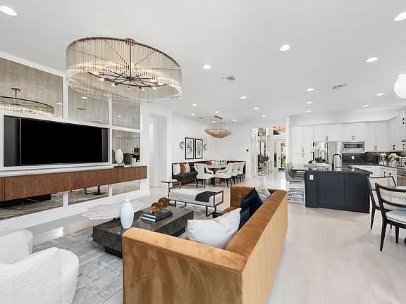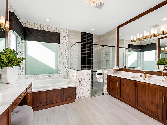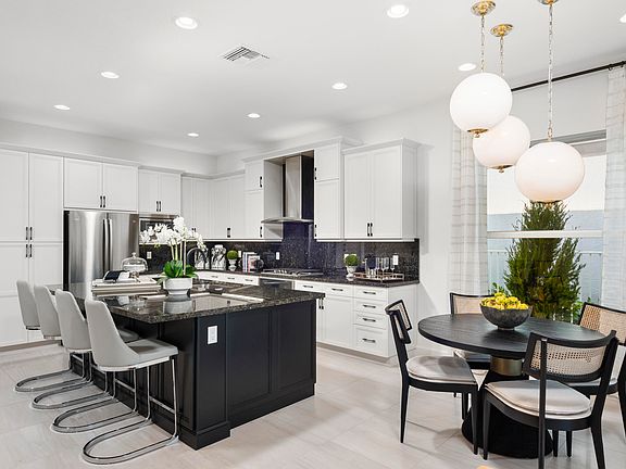 Bimini floorplan featuring 3 Bedrooms, 3 Bathrooms, Den and Great Room. The gourmet kitchen will have white flat acrylic cabinets, with an upgraded convenience package. Upgraded Calacatta Gold Quartz countertop and backsplash, plus a stainless steel under mount sink are additional features. All GE Profile SS gas appliances. Elegant 24'' x 24'' upgraded porcelain matte tile flooring will be throughout the main living areas and den and carpet in the bedrooms. The Master Bath features tile to the ceiling in the shower with grey flat cabinetry and upgraded quartz countertops. 39,000 sq. ft. clubhouse featuring a restaurant, lifestyle director, card rooms, billiard room, fitness center, resort style pool. Featured photos are of the model home not the listed property.Occupancy JAN./FEB. 2024