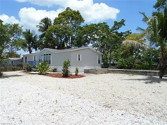 Outstanding Value!! Newer mobile home for this development in great condition. New carpet and paint, ready to move into. Large eat in kitchen and formal dining area. This home also features a family room with fireplace. Large bedrooms. Master bathroom has dual sinks, garden tub and separate shower. This has one of the largest lots in the development. Low maintenance yard. No lot fees or HOA. Great location, only 15 min. to Sanibel or Fort Myers Beach. Hurry and set up your showing today.
