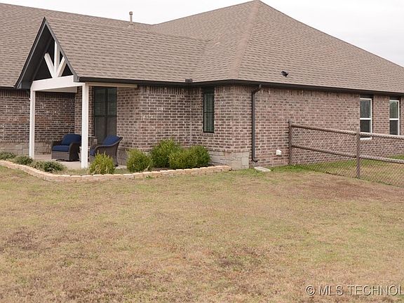 This stunning contemporary farmhouse seamlessly blends modern design with rustic charm. Boasting 3 bedrooms, 3 bathrooms, and a flex room, the home is filled with high-end upgrades, including rich wood flooring and extensive beam work featuring reclaimed barn wood for a timeless touch. The inviting entry showcases a unique brick wall, echoed in the half bath, while the hidden pantry adds a clever element of surprise. The spacious master suite includes a walk-in closet with extra storage and a luxurious walk-in shower. Outdoor living is a dream with an extended patio, a gazebo equipped with electric connections, and a cozy fireplace. Additional features include a built-in dog kennel, a camper pad, and updated A/C, ensuring comfort and convenience. This thoughtfully designed home combines practicality and style, perfect for modern living. All Appliances including Washer, Dryer, Refrigerator and Outdoor Television will remain for the buyers' convenience as well as a riding lawn mower.