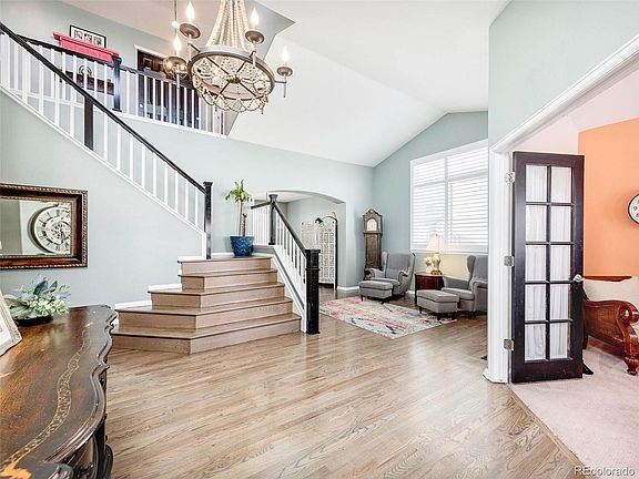 Super charming, cheerful and updated home with personality in the beautiful Anthology neighborhood! As you enter the front door, you'll immediately know this is "the one"! Hardwood floors complement the artistic touches throughout. Enjoy working from home in the main floor office with French doors that's bathed in morning sunshine. Spend quality time with family and friends in the updated white kitchen with island, subway tile backsplash, granite counters and stainless appliances. Family room with gas fireplace is an extension of the kitchen. Fantastic outdoor space with covered patio, deck with sun shade and beautiful landscaping. On the upper level, the primary suite is a dream with plenty of space to make it a relaxing haven, and the bathroom is gorgeously updated. Luxurious primary bathroom has separate custom vanities, a designated place for the "beauty process" and a huge tiled shower. There are three additional secondary bedrooms on the upper level; one en-suite bedroom and two which are connected by a full bathroom. Sneak downstairs for some fun in the finished basement with room for movies and a game table. A potential 5th bedroom or second office is conveniently available for occasional guests or a second quiet work area. So many special touches make this home a standout when compared to others! Terrific location near the end of a cul-de-sac, walking distance to the elementary school, park, pool and clubhouse. A truly special home!