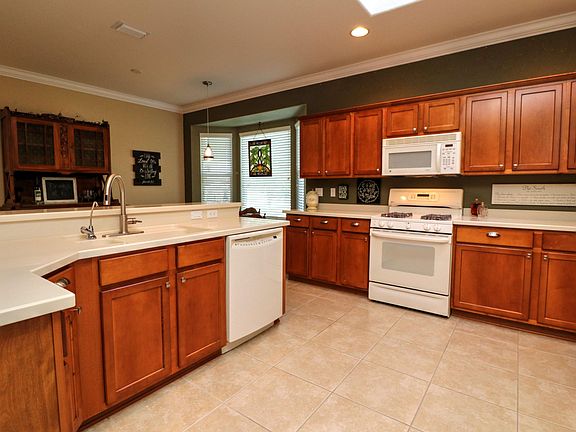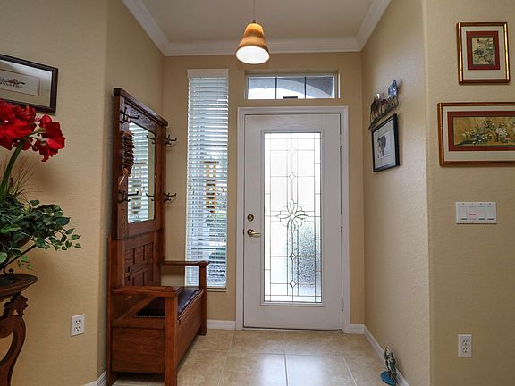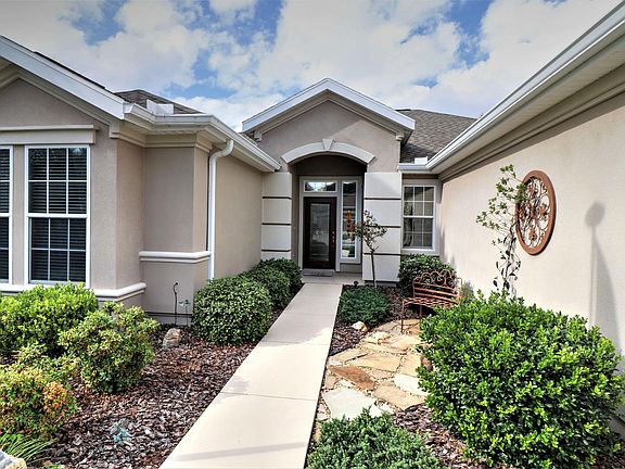Picturesque park-like privacy lot. Newly re-decorated, this two bedroom Madeira also features a home office, den and garden room. Open floor plan with plenty of natural lighting (skylight in kitchen). Bay window in dining nook and master bedroom with bumped out window in guest bedroom. No carpeting ... newer ceramic tile wood pattern floors in home office & bedrooms. Enclosed lanai (Garden Room) under heat and air and flows to the flag stone patio. Extended 2-car garage plus golf cart garage. Lots of storage; plus 8' x 10' wine room or diva closet. GE whole house filtration system. Shingled 2014. HVAC 2010. Move-in ready and beautiful. Not all living space is reflected in square footage with Marion County PA.