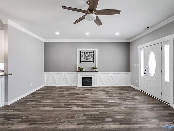 - Features: 9’ Ceiling, Ceiling Fan(s), Crown Molding, Fireplace, Recessed Lighting, LVP, Wainscoting
