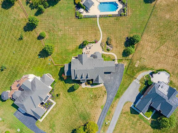 Perfectly sited in a cul-de-sac on 1.16 acre manicured homesite, this colonial delivers striking design elements, architectural interest throughout, and professionally landscaped exteriors! Impressive elements of this home include a lead glass solid wood door entry, a 20' grand foyer with a sweeping dual staircase, tray ceiling with chandelier, a formal living room, a banquet size dining room with wainscoting and a tray ceiling, a private study with double French door entry, and a conservatory enveloped by walls of windows. The great room boasts 2 story coffered ceiling, a vibrante wall of windows, a marble surround fireplace flanked by custom cabinetry and shelving, and an upper level overlook. The gourmet kitchen features SubZero and Bosch appliances, 42" custom cabinetry, Santa Cecilia granite counters, a tiered island with breakfast bar, a huge breakfast area with French door access to the paver patio and backyard retreat, and a brilliant morning room displaying a grouping of Palladian windows, and French doors opening to the relaxing conservatory. Owner's suite presents a tray ceiling with chandelier, columns framing the sitting room, 2 walk-in closets, and a luxury bath with a tray ceiling and chandelier, dual vanities, an oversized glass enclosed shower, and a soothing oval soaking tub. Lower level showcases a rec room and game room with a bar and wired for surround sound, a full bath, a bedroom, and a media area with a walk-up to the ideal backyard oasis. Exterior amenities include a fenced in self-cleaning salt water pool, a covered pavilion with a fireplace, refrigerator, beer tap, and wet bar, a lawn sprinkler system, a custom paver walkways and patio, fenced in backyard, and custom landscaping around the paver patios and pool.