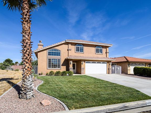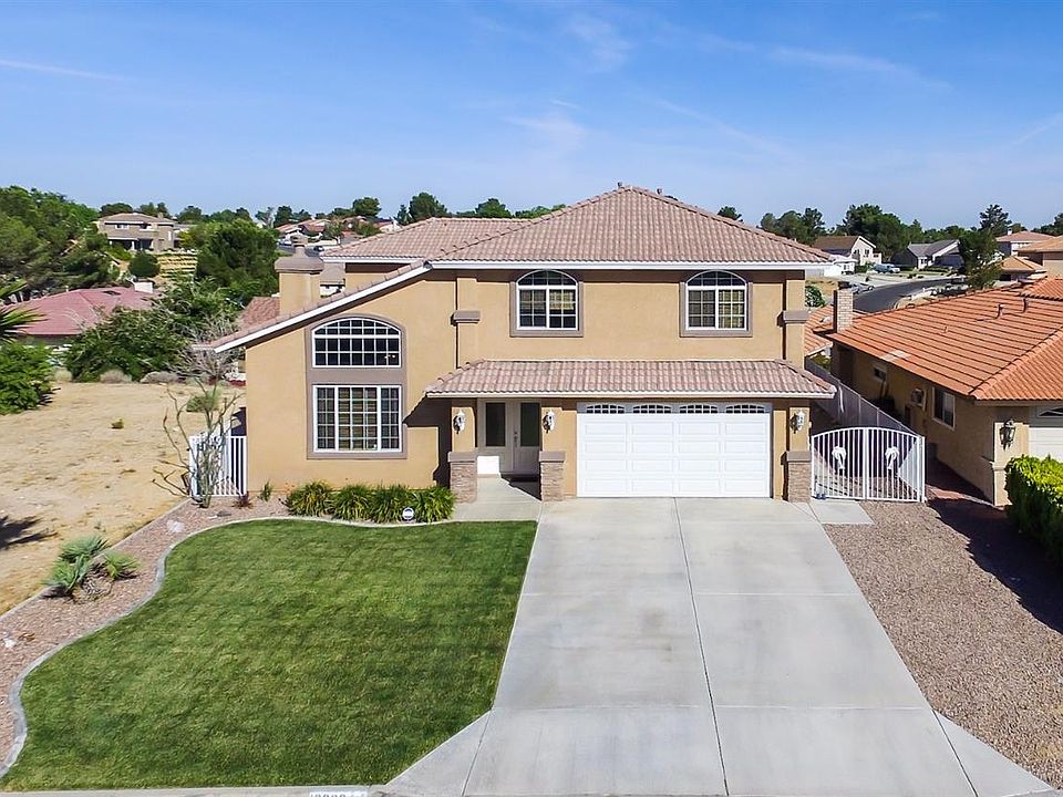 A Home You'll Be Proud to Own. This spectacular home has 4 bedrooms with one downstairs, 3 bathrooms, almost 3000 sq. ft. built in 2006 located in Spring Valley Lake on a cul-de-sac. When you walk in the double door entry your eyes are drawn to the 2-story ceilings with tons of natural light coming in. Formal Living Room with wood flooring & fireplace, Formal Dining Area, Family Room open to the kitchen with breakfast bar, Corian counter tops, stainless steel appliances, beautiful cabinets & walk-in pantry. In-door laundry room with sink. Ceiling fans through-out. Beautiful staircase takes you up to the loft area, 2 guest bedrooms, guest bathroom & Master Suite with double door entry, huge walk-in closet, covered balcony with amazing views of Mountains, Golf Course & Lake! Master bath has double sinks, jetted tub & separate shower. 2-car attached garage with storage shelves & automatic garage door opener. RV access. Lush grass & rock landscaping in front & low maintenance landscaping in back yard with covered patio & extended patio with nice seating area. Fully fenced with wrought iron. Outside trim has been recently painted and stacked stone added to exterior. This home is ready for you to just move in! Call for your appt today to view this home.
