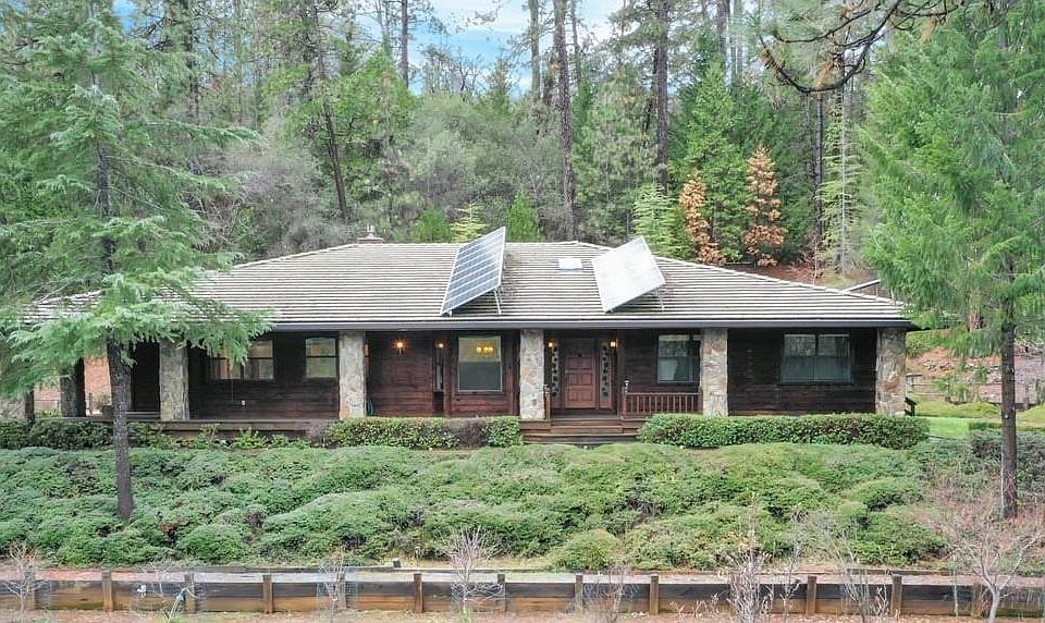 Gorgeous, PRIVATE SETTING, ROCK pond & Water fall just minutes to town with SELLER FINANCING AVAILABLE. Custom one-story home boasts Natural Rock Columns, Cedar siding, Owned Solar, LOW PGE! Wrap around Covered Decking, Slate covered Patio, ready for your Hot tub. Walk or mountain bike for miles right from your own back yard on Irrigation Canal Trails. Yes, there is Irrigation water, plus a great well. Imagine yourself sitting on the expansive covered deck watching the wildlife and gazing at the Starry night sky. If you have ever dreamed of living in the foothills with abundant lakes, recreation, four distinct seasons, Music, Art Live Theater & less than 1 hour to ski slopes, then this dream can be reality. Enjoy Holiday festivities & quaint small town, Many restaurants & shops. Your family and friends will love visiting you. The Large kitchen includes a breakfast nook and opens to a HUGE Great room w/ Gas Stove & Rock Surround. HIGH Open beam Wood Ceilings. French doors, Formal Dining room & large family room. Spacious Primary suite & Bath. Concrete Tile roof. Room for ADU & shop. Oversize 2 car gar & more. OPPORTUNITY IS KNOCKING, Bring your offer!