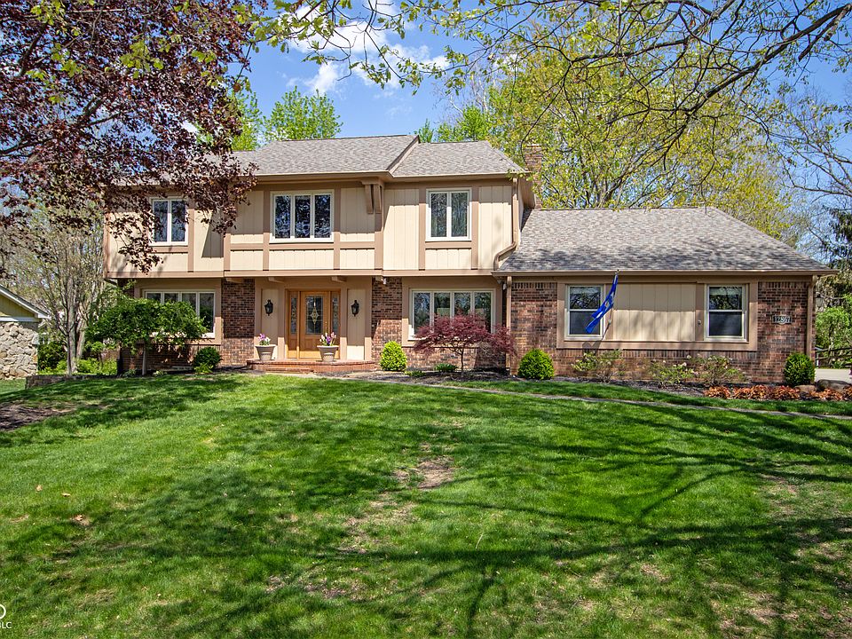 Located in east Carmel's desirable Brookshire North on a generously sized wooded lot, this meticulously maintained 4-bedroom, 2.5-bathroom residence offers a harmonious blend of comfort and style. Inside, you find beautiful hardwood floors and a warm, inviting family room featuring a cozy fireplace. The kitchen is equipped with elegant stone countertops, stainless steel appliances, and a separate pantry, providing ample storage and preparation space. The primary bedroom includes an attached bathroom and a walk-in closet, offering a private retreat. The finished basement provides even more versatile living space - perfect for a home office, media room or play area. Enjoy peace of mind with newer windows, a roof that's only 5 years old, and an HVAC system replaced in 2021. Enjoy all Carmel has to offer including exceptional schools, parks, shopping and more - a must see!