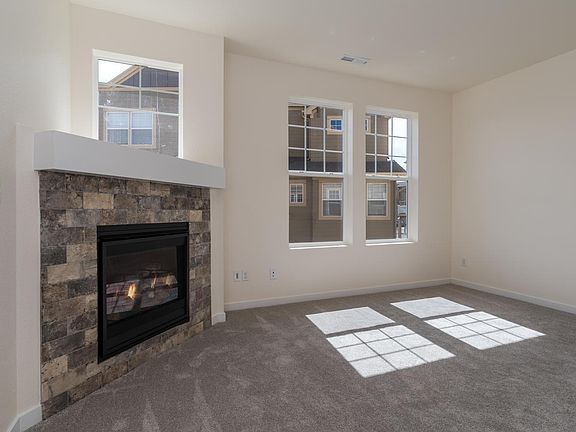 Open airy living space and features an impressive master suite with walk-in closet, double vanity, granite kitchen tops, breakfast bar, large pantry, maple cabinetry with dovetailed drawers, soft close doors and drawers, stainless appliances, gas fireplace, laminate plank flooring in kitchen, upgraded carpet/pad in living areas, tile tub and shower surrounds, second floor balcony, air conditioning, high-efficiency furnace, and Rinnai tankless water heater. Photos are example of a finished unit.