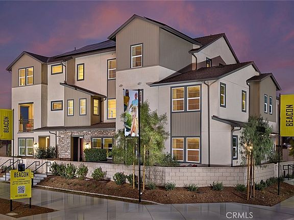 RECENT PRICE ADJUSTMENT & MOVE IN READY! Discover the Brand New Beacon Plan 3AR at Eastvale Square—a spacious and versatile three-story condominium with up to 1,977 sq. ft., featuring 4 bedrooms, an optional den, and 3.5 baths. Designed with an open and flexible layout, this home offers modern style and convenience for today’s lifestyle. On the entry level, you’ll find a 2-car side-by-side garage with direct access to a first-floor bedroom/den and a full bathroom, perfect for guests or a home office. The second floor boasts an open great room, a dining area, and an upgraded kitchen complete with a large island, powder room, and a covered outdoor deck—ideal for relaxing or entertaining. The third floor provides enhanced privacy, with a spacious primary suite featuring a walk-in closet, an additional bedroom and bathroom, and a laundry area with an included washer and dryer. Designer-selected upgrades add elegance, including luxury vinyl plank flooring, quartz countertops with a full tile backsplash, sleek white cabinetry, and 9-foot ceilings on each level. Smart home features, a washer, dryer, refrigerator, and leased solar are also included for energy efficiency and convenience. The Eastvale Square community offers a resort-style lifestyle, with exclusive resident amenities such as pools, spas, BBQ areas, parks, and scenic paseos that connect to local shopping, dining, and entertainment options. Enjoy outdoor activities in a vibrant neighborhood designed to enhance your lifestyle.