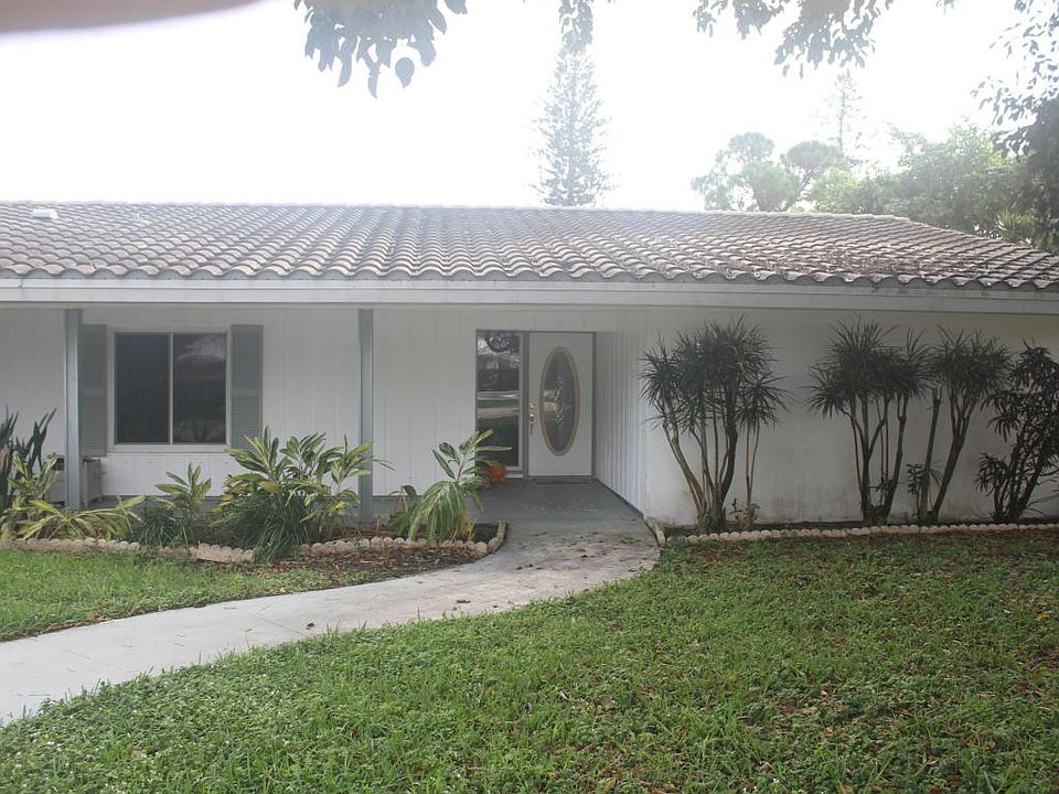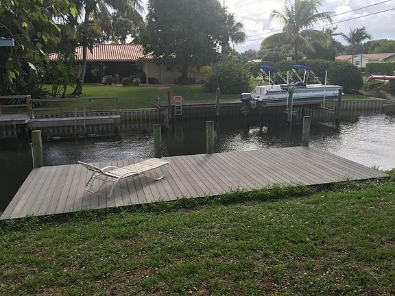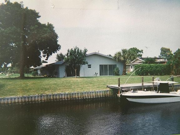 CBS home on a canal only 9 homes from the intracoastal with one fixed bridge for under $500,000! All the windows and 4 sets of sliding glass doors have been replaced with insulated (double paned) glass windows. Full house Hurricane shutters. There is a Workbench and cabinets in an over-sized 2-car garage. The sea wall was replaced about 5 years ago and is maintained by the county. Dock replaced with composite boards. This home has over 2300 s.f.under air and is directly on the canal - it just needs updating. A/C compressor is 3 years old. Roof replaced in 2005. HOA is $140 per year.