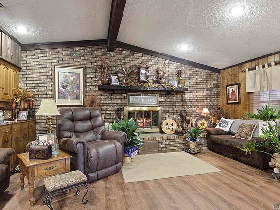 Charming Brick Home with Spacious Living and Outdoor Retreat This beautifully maintained brick home offers a perfect blend of comfort and functionality. Featuring a large family room with vaulted ceilings, custom cabinetry, updated flooring, and a cozy brick wood-burning fireplace, it provides a welcoming atmosphere for family and friends. The built-in bar area adds a touch of convenience for entertaining. An additional living space off the garage can easily be transformed into a guest suite or used as a versatile entertainment room. Outside, enjoy the serenity of mature trees in the front yard and a spacious, fenced backyard ideal for children or pets. With covered RV or boat storage, a greenhouse, and an additional storage building, this property meets all your storage needs. Located just outside Omaha city limits and minutes from the White Oak River, this home offers both privacy and convenience.