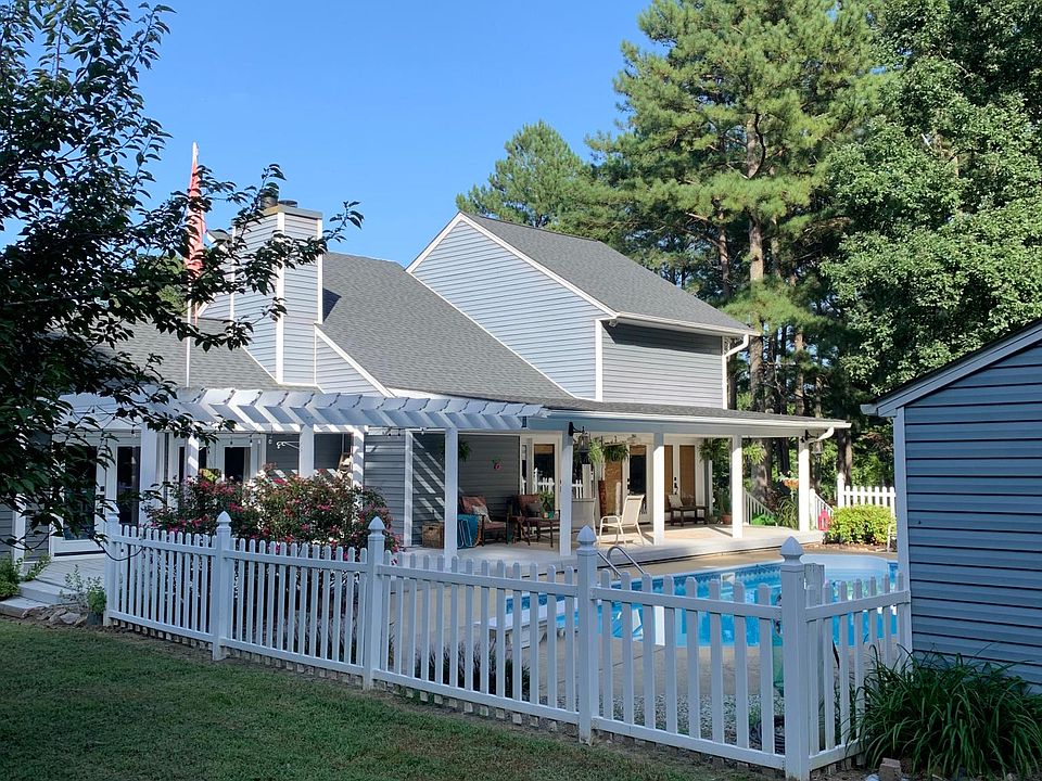 A beautiful private oasis on 6 acre landscaped lot. During the summer, relax in a private Grecian Salt H20 pool or under the covered porch. This home is perfect for everybody! There is a ton of storage with a detached 2 car garage/workshop, 4 carports, a pool shed, and a garden house. This house has a nice open floor plan with lots of natural lighting, vaulted ceilings, recess lighting, and incredible views of a pond and pool! The living room has a wood burning fireplace made with natural stone and the spacious downstairs Master Bedroom also has a wood burning fireplace! The house has all brand new kitchen appliances and washer/ dryer. The water supply is well water with a built in filtration system. In addition, the brand new HVAC has a UV light to sanitize released air into the house. This house is a must see! Owner is a NC licensed real estate agent. Renter pays for all utilities (only electric). Pet deposit of $300. No smoking allowed inside. Owner pays lawn care.