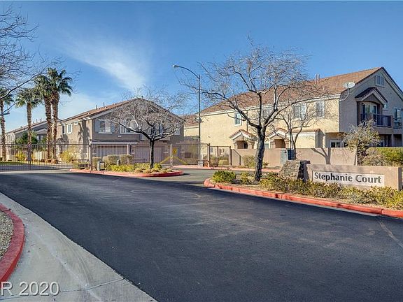 *RARE TO MARKET*BEAUTIFUL 2 BR/2 BATH TOWNHOME IN GATED STEPHANIE COURT COMMUNITY IN HENDERSON, NEAR GREEN VALLEY *ENTER DOWNSTAIRS & WALK UP TO AMAZING LIVING SPACE FEATURING VAULTED CEILINGS, FRENCH DOORS & BALCONY OVERLOOKING THE COMMUNITY POOL *BRAND NEW CARPET & WOOD LOOK LAMINATE FLOORS, CEILING FANS, SPACIOUS MASTER W/WALK-IN CLOSET & OWN BATH, 2ND BR ON OPPOSITE SIDE of LIVING ROOM* ALL APPLIANCES INCLUDED, WATER SOFTENER, ATTACHED 1 CAR GARAGE *GREAT LOCATION! IMMACULATE CONDITION *LOW HOA DUES OF $138 PER MONTH*
